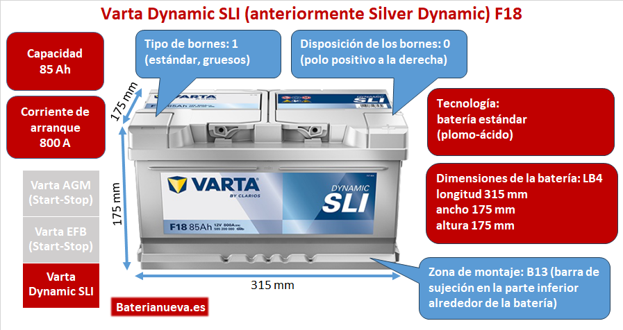 Varta F18 – Batería Silver Dynamic 85Ah 800A B13